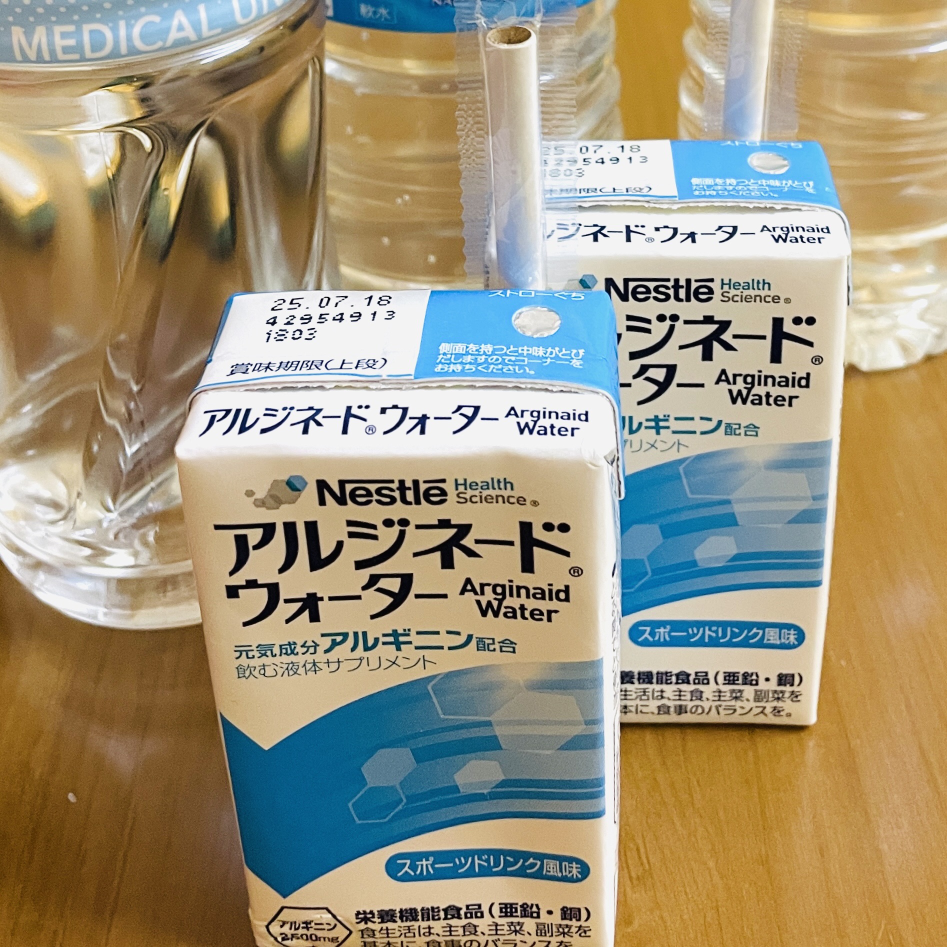 看護師さんが持ってきてくれたアルジネードウォーターという飲み物(4本)は必須です。